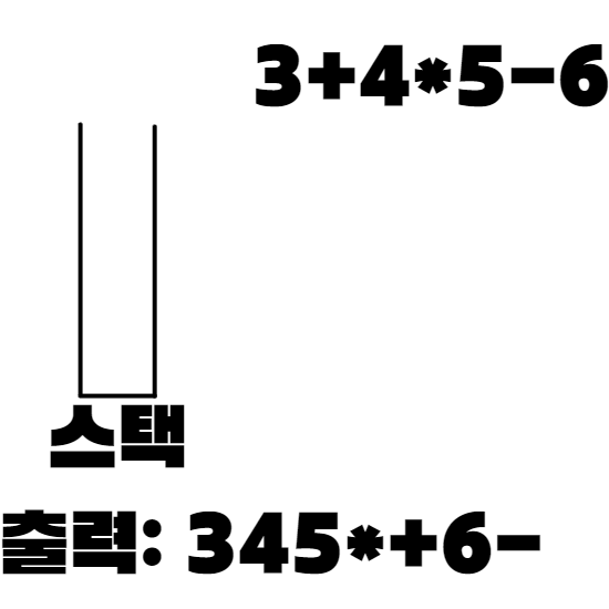 - 더이상 읽을 수식이 없으면 스택에 있는 연산자를 모두 pop한다