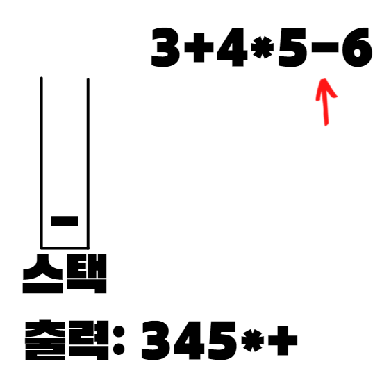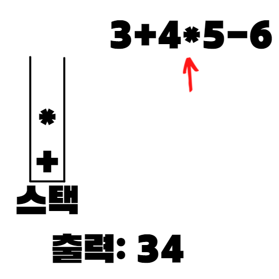 중위 표기식이 3+4*5-6 인 경우의 예