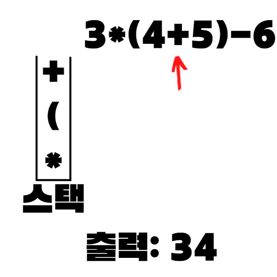 중위 표기식이 3*(4+5)-6 인 경우의 예