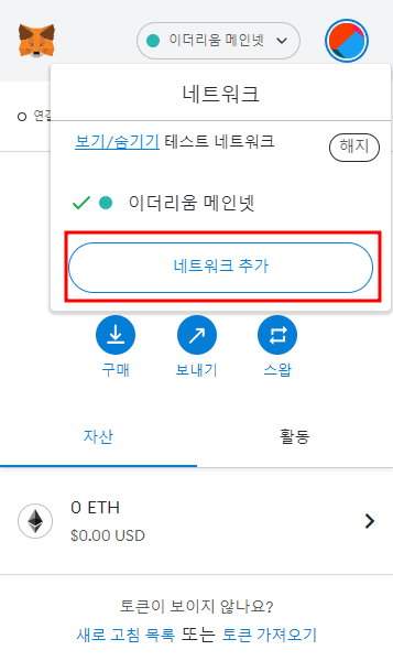 MetaMask에서 프라이빗 네트워크에 접속하기