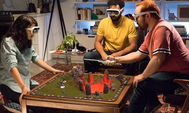 스타트업 기업인 틸트 파이브(Tilt Five)는 AR을 이용해 3D 홀로그램으로 게임을 할 수 있는 시스템을 개발했다. AR 안경을 착용하면 게임보드에서 3D 홀로그램이 나온다. 보드를 통해 퍼즐 게임부터 어드벤처 게임 또는 레이싱 게임까지 다양한 AR 게임을 할 수 있다.