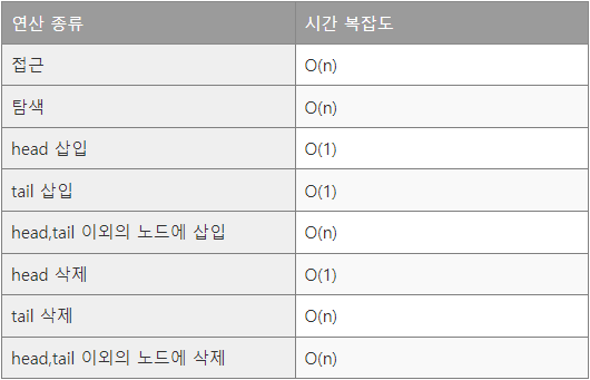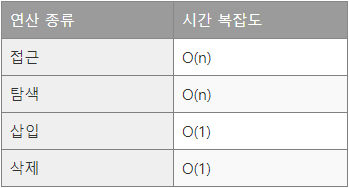 탐색, 접근 연산은 O(n)의 시간 복잡도를 갖고